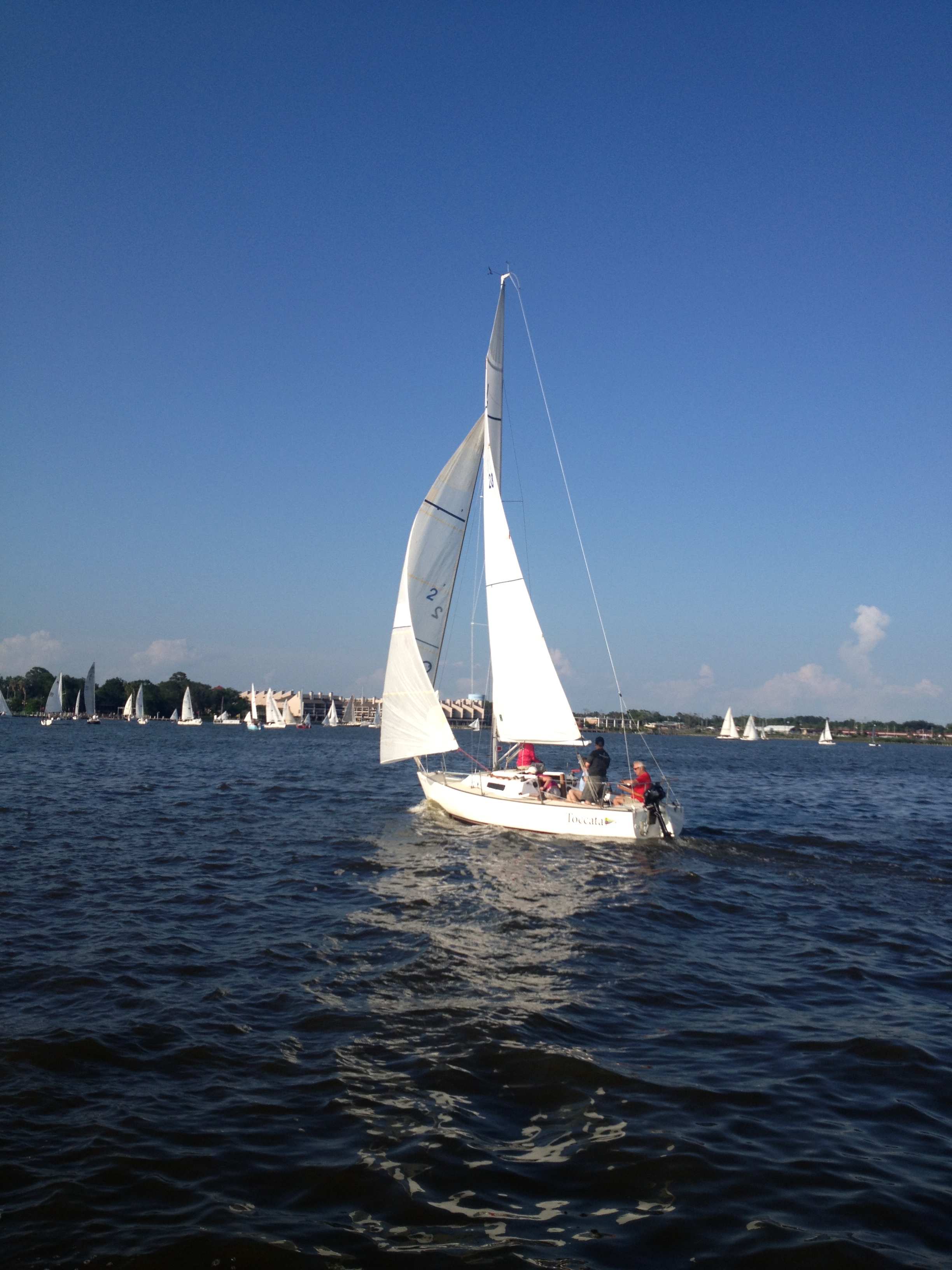 So within 24 hours of the boat being turned over to me we take the boat out for the first time and race in CLRA series 2 race 1. Fun time on the new boat, she sailed like a dream. Racing was a different story; we got squeezed off at the pin end at the start and started late, we made lots of mistakes, and we finished last in the class. But we had a fun sail!